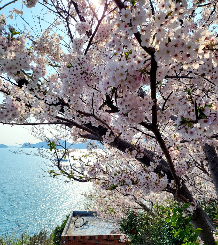 호텔을 나와 근처 버스 정류장에서 태종대 행 버스를 탔다. 부모님이 버스 카드가 되네 마네 걱정을 하셨지만 아무 문제 없이 찍혔다. 사실 나도 부산 처음 왔을 때 버스나 지하철 기존 카드로도 되는건가 싶어서 걱정했던 적이 있어서 속으로 웃음. 태종대 가는 길은 30분 정도. 벚꽃이 한창이라 영도 거리 풍경을 보는 재미가 있다. 길가에 흐드러지게 핀 꽃과 멀리 보이는 바다와 탁 트인 시야를 보니 진짜 부산에 온 느낌이 난다.